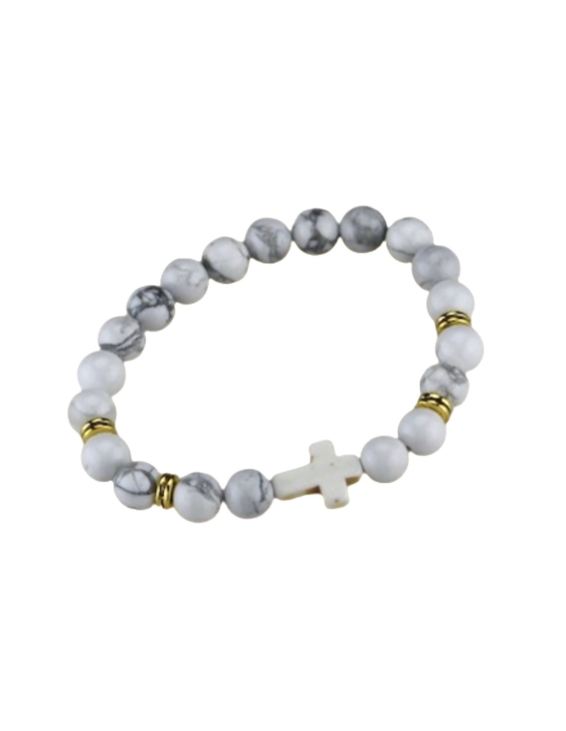 Bracelet coloris turquoise blanche, effet craquelé avec petite croix.